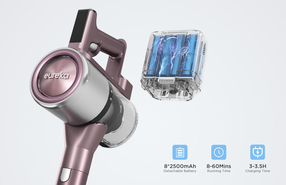 Akkulaufzeit von bis zu 60 Minuten beim Handstaubsauger im niedrigen Modus, 8*2500mAh Akku met grotere capaciteit, lange reinigingszeit, tief reinigen Sie Ihr ganzs Haus leicht.