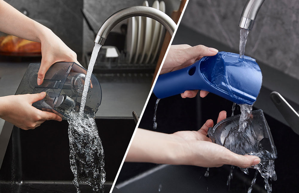 De grote, transparante dubbele tankhoed is voorzien van 50,7oz voor saubereswasser en 27oz voor schmutzige wasser, dus als je nog meer reinigingsproducten gebruikt, kun je saubereswasser en schmutzige wasser niet wassen.
